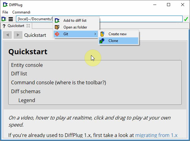 Hint 2: Rather than using the text bar at the top of the window, you can use any of the methods described in the DiffPlug quickstart to get the context-menu for a file.